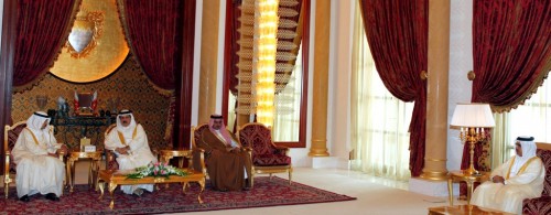 الملك استقبل بحضور رئيس حكومته خليفة بن سلمان آل خليفة وولي عهده سلمان بن حمد آل خليفة وزير الداخلية راشد بن عبدالله آل خليفة وأشاد بجهود الوزير ومنتسبي وزارته، بعد أيام من انطلاق حملة التمرد التي تدخل يومها السادس.