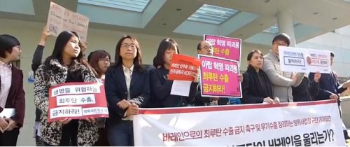 ولأن الغاز المسيل للدموع تسبب بمشاكل عديدة، أوقفت الحكومة الكورية استخدامه منذ عام 1999. والشركات الكورية تنتج الآن قنابل الغاز المسيلة للدموع فقط بغرض التصدير. وليست هذه هي المرة الأولى التي يتبين فيها أن هناك مشاكل ناتجة عن تصدير كوريا لعبوات الغاز المسيلة للدموع. ففي حزيران/يونيو 2013، استخدمت الشرطة في تركيا هذه القنابل ضد المتظاهرين السلميين وتسببت بإصابة الكثيرين. ومن ضمن القنابل التي استخدمتها تركيا كانت تلك التي تنتجها شركة دايكوينغ للمواد الكيميائية، وهي شركة كورية.