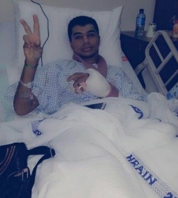 وأظهرت الكشوفات الطبية إصابته بكدمات وجروح في ظهره وفخذيه ويده ورجله. وما تزال عناصر من الشرطة تحاصر غرفته حيث يرقد بمستشفى السلمانية منذ يوم أمس.