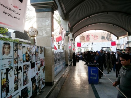 ومن جانب آخر خرجت جموع بحرينية من زوار العتبات المقدسة في كربﻼء بمسيرة شعبية تقدمها أباء الشهداء وعوائل المعتقلين، ورفعوا اﻷعﻼم البحرينية والشموع وصور الشهداء.