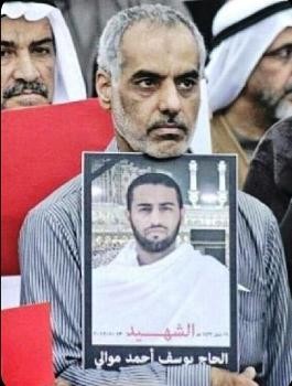 *الشهيد يوسف موالي (24 عاماً) اختفى في يناير/ كانون الثاني 2012، قبل أن يتم العثور على جثته ملقاة عند ساحل منطقة أمواج شرقي المنامة. ادعت السلطات أن وفاته بسبب حادثة «الغرق»، فيما لم يتقدم أحد بأية شواهد تثبت غرقه، ووجدت جثته مليئة بالكدمات وآثار الضرب والتعذيب.