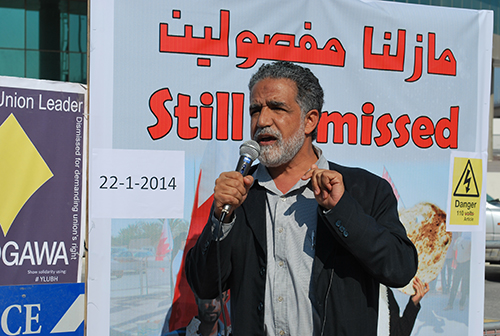 كما ألقى صادق الدرازي وهو أحد المفصولين من شركة المنيوم البحرين ألبا، كلمة صريحة، قال فيها "لقد دخلنا السنة الرابعة منذ فصلنا، ونحن لدينا نفس طويل لأن لدينا حق لن نتنازل عنه".