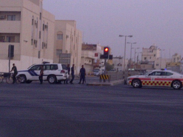 كما سمعت النغمة "تن تن ترن" التي اعتاد شباب 14 فبراير/ شباط استخدامها بواسطة أبواق السيارات للإشارة إلى سقوط الحاكم. وحوصرت جميع منافذ القرية بواسطة عناصر مكافحة الشغب من جميع جهاتها، وشوهد تحليق مروحي لإحدى الطائرات العمودية التابعة إلى وزارة الداخلية، في حين ووجه المتظاهرون بقنابل الغاز المسيل للدموع والرصاص المطاطي وكذلك الرصاص الانشطاري. كما أقيمت نقطة تفتيش على أحد مداخل القرية.