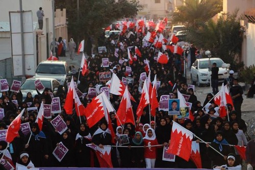 مرآة البحرين (خاص): تظاهر الآلاف الأحد (9 فبراير/ شباط) بدعوة من جمعيات المعارضة، ضمن برنامج للتظاهر بمناسبة الذكرى الثالثة للثورة.