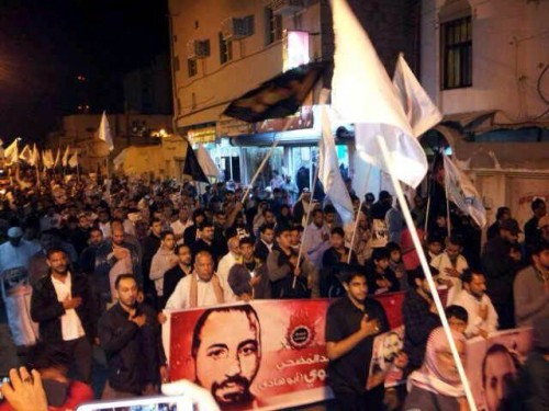 ولف جثمان القائد في ائتلاف 14 فبراير بعلم البحرين، وأحاطته مجموعة من الشبان الذين رفعوا راية الائتلاف، وردد المشيعون، الذين ساروا في بلدة سار، شعارات مناوئة للملك حمد بن عيسى آل خليفة، وطالبوا بإسقاط النظام.