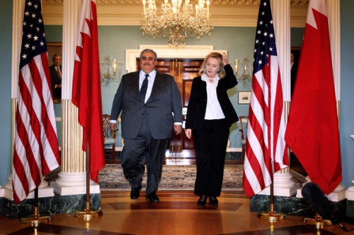 وتحدث الرئيس أوباما عن الانتهاكات، لكنه في الوقت ذاته استمر ببيع الأسلحة إلى الدولة الخليجية الثرية والتي كانت تستخدمها ضد المتظاهرين. وليس صدفة أن البحرين تستضيف الأسطول الخامس للبحرية الأمريكية في قاعدة مساحتها حواالي 80 فدان وكلفة توسعها 580 مليون دولار".