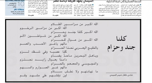 مرآة البحرين: أفردت صحيفة «الاتحاد» المملوكة إلى شركة أبوظبي للإعلام في أبوظبي والتي تعتبر من أول الصحف الصادرة في الإمارات والمعبرة عن حكومة إمارة أبوظبي، أفردت مساحة مهمة ضمن صفحتها الأولى اليوم الثلثاء لنشر قصيدة للشاعر الإماراتي ضاحي خلفان خميس العميمي تحت عنوان «الله أكبر من مزامير الظلام». القصيدة مليئة بالشتائم إلى أهل البحرين، حيث تصفهم بـأنهم «عيال الحرام» «وشياطين الأمم» «والمجوس» وأنه ليس «لهم غير الصوارم والسهم» وتسفيرهم إلى «مشهد وقم». فيما يلي نص القصيدة: