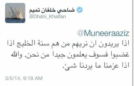 لكن خلفان عاد لكي يحذف التغريدات في وقت لاحق على نشرها اليوم.