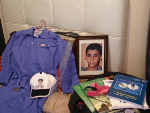 بيت الطفل "جهاد الحبشي" صار واحداً من البيوت الكثيرة في البحرين التي فقدت زهوة أطفالها، البيت خلا من صوت جهاد، من ضحكته، من نشاطه الصاخب وروحه المرحة. غرفته، كتبه، ملابسه، كلها تحن إليه وتفتقده، عشر سنوات هي مدة الحكم التي صدرت في حق براءة جهاد. اعتقل في يوليو 2012، اتهم بحرق مدرعة، أول طفل يحاكم بقانون الإرهاب، عذب منذ لحظة اعتقاله، كُسر طقم التدعيم لأسنانه، حرم من إكمال دراسته، صدر الحكم عليه في أبريل 2013 بعشر سنوات، يقضي حكمه منذ حينها في سجن جو.