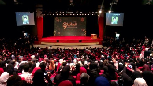 وضجت قاعة الشيخ عبدالعزيز التابعة إلى فرع الجامعة بـ"الصخير"، والتي تُحظر فيها الأنشطة والشارات السياسية، بالتصفيق الحار عند ظهور صور الرئيس العراقي السابق صدام حسين عبر فيلم عرضته الجالية العراقية في إطار مشاركتها بمهرجان الجاليات الذي تقيمه الجامعة سنوياً والذي صادف اليوم. هكذا علانية. فيما لم ترشح أية أنباء عن قيام الجامعة بالتنويه لذلك.