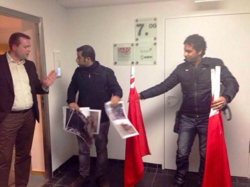 وتم الإعلان عن الندوة في إطار ضيق، كما اشترطت الجهة المنظمة التسجيل للحضور، فأقدم نشطاء ألمان وبحرينيين في برلين بالتسجيل لحضور الفعالية، وذلك قبل أيام من انعقادها، ليفاجأوا بإلغاء أسمائهم، فقاموا بالاعتصام أمام مقر الجمعية.