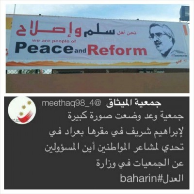 وقالت وعد "هذا التجاوز الصارخ يتزامت مع ذكرى اعتقال أمين عام وعد ابرهيم شريف والذي صادف 17 مارس/ آذار وبعد اطلاق جمعية الميثاق الموالية لتغريدات تحريضية على إزالة صورة أمين عام وعد من على مقر وعد في المحرق.