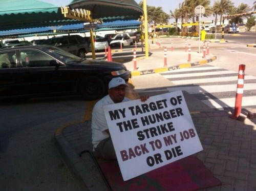 وينفذ المفصول أحمد ميثم، أب لأربعة أولاد، إضرابا مفتوحا عن الطعام منذ 7 أبريل/ نيسان الجاري، مؤكدا أنه لن يفك إضرابه حتى العودة للعمل أو الموت.