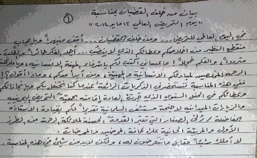 1. استخلاصاً للدّروس الّتي تعلّمناها منذ يوم الخميس الأسود ومن خلال مجريات الأحداث على مدار السنوات الثّلاث الماضية، ومن منطلق الآية الكريمة "وقل اعملوا فسيرى الله عملكم ورسوله والمؤمنون" فأمام محضر التّضحيات والعطاء الّتي قدّمها وما زال يقدّمها الممرّضون والممرّضات الشّرفاء وكافّة الكوادر الصّحّيّة والاسعافيّة المخلصة، يتوقّف القلم وينكسر، ويكون اللّسان عاجزاً عن التّوصيف للملاحم الإنسانيّة الّتي أبهرتم بها العالم، خاصّة عندما يكون العطاء متبوعاً بالجراحات والآلام فالممرّضون والمسعفون وكافّة الكوادر الشّريفة لم يكتفوا عطاءاً وتضحية من أجل رعاية المرضى بالمستشفيات والمراكز الصّحّيّة، بل امتدّ عطاؤهم لينقذوا شهيداً سقط هنا، وضمّدوا جراحات مصاب ينزف هناك! متحمّلين بذلك كافّة المخاطر والاعتداءات الوحشيّة من قبل ما يُسَمّون بقوّات حفظ النّظام!!! والجرجرة إلى لجان التّحقيق البوليسيّة بالمستشفيات وأروقة قسم التّحقيقات الجنائيّة والنّيابة العامّة والعسكريّة، مصحوبة بالإهانات والتّعذيب، وكأنّ الكوادر الصّحّيّة عملت الجرم الّذي لا يُغتَفَرَ!!