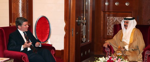 مرآة البحرين (خاص): التقى ملك البحرين حمد بن عيسى آل خليفة اليوم (الأربعاء ٤ يونيو/ حزيران ٢٠١٤) وزير شؤون الشرق الأوسط وشمال أفريقيا بوزارة الخارجية البريطانية هيو روبرتسون.