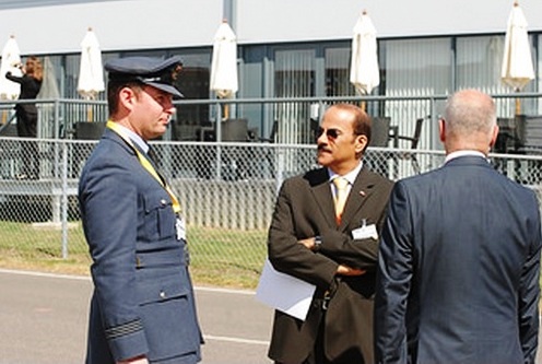 مرآة البحرين (خاص): نشرت منظمة "حملة مناهضة تجارة الأسلحة" CAAT عبر حسابها على "فليكر" صورة تظهر عضوا في العائلة الحاكمة بالبحرين في معرض فارنبورو للأسلحة الذي افتتح البارحة في متحف العلوم في مدينة فارنبورو بالقرب من لندن.