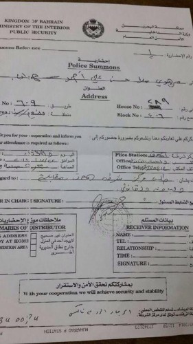 مرآة البحرين: تلقى الرادود مهدي سهوان إحضارية تطلب حضوره إلى مركز شرطة المحرق اليوم الثلثاء. ومن المقرر أن يمثل للتحقيق في المركز الساعة 5:30 مساء، حسبما أشارت إلى ذلك إحضارية استدعائه.