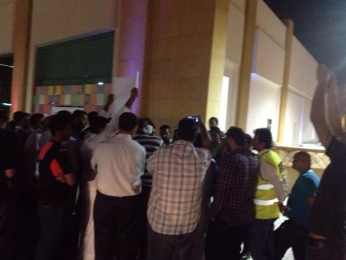 تظاهرة أمام مبنى صحيفة البلاد احتجاجا على التعرض لآخر أئمة الشيعة