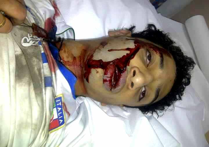 ![]() مخضباً بدمائه في مركز سترة الصحي |