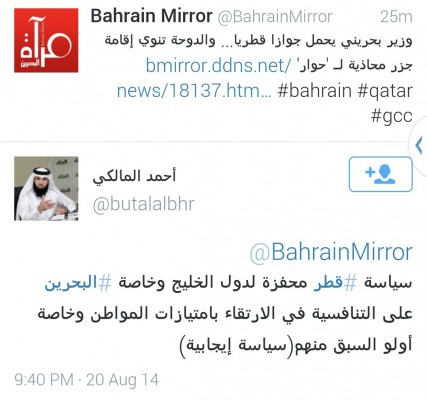 وجاء تعليق المالكي هذا على تقرير نشرته "مرآة البحرين" بشأن حمل وزير بحريني للجنسية القطرية، وبدئها في عملية توظيف عسكريين بحرينيين جنستهم في صفوف جيشها الوطني.