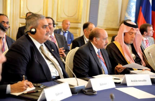 وخلال كلمته في المؤتمر الدولي من أجل السلام في العراق المنعقد في باريس، دعا وزير خارجية البحرين لما أسماه "القضاء على المجموعات الإرهابية التي تشكل خطرا لا يقل عن ما يسمى بداعش كحزب الله اللبناني".