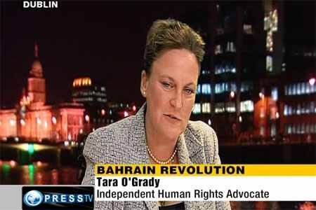 الناشطة الإيرلندية (تارا أوغريدي): صدور البحرينيين العارية تواجه دبابات الجيش الوطني والغزاة السعوديين.