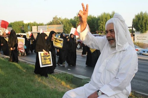 ورفعت المتظاهرون أعلام البحرين ورددوا شعارات ترفض "حلول المهزلة" -كما أسموها-، تؤكد على مقاطعة الانتخابات التشريعية المقبلة التي من المتوقع أن يعلن عنها الملك حمد بن عيسى آل خليفة الأسبوع المقبل.