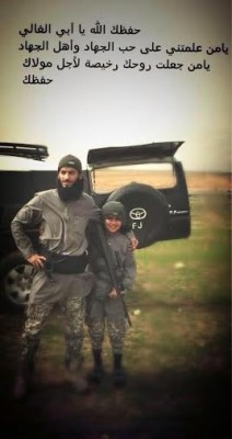 وفي بعض الصور يظهر وهو يقف بجوار رجل قال أنصار الدولة الاسلامية إنه والده. وفي صورة يبدو ممسكا ببندقية آلية وارتسمت على وجهه ابتسامة عريضة.