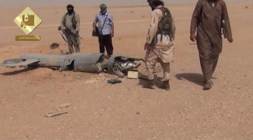 وبث التنظيم صورة يظهر فيها بعض جنوده يقفون أمام حطامٍ قالوا انه حطام طائرة استطلاع أميركية.