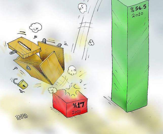 والحقيقة أن نسبة المشاركة هي 13.42% فقط من مجمل الكتلة الانتخابية في هذه الدوائر، في حين بلغت هذه النسبة 59.6% في انتخابات 2010!