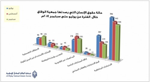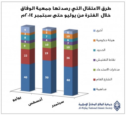 مرآة البحرين (خاص): كشف مسؤول دائرة الحريات وحقوق الإنسان بجمعية الوفاق الوطني الإسلامية السيد هادي الموسوي عن تسجيل 328 حالة اعتقال خلال 3 شهور (يوليو/ تموز وأغسطس/ آب وسبتمبر/ أيلول 2014) بينها 5 حالات لنساء، و30 حالة لأطفال، في حين أن عدد مداهمات المنازل المسجلة بلغت 608 حالة.