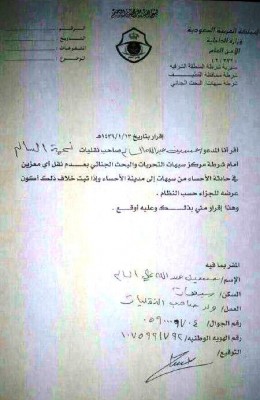 مرآة البحرين (خاص): نشر ناشطون في مواقع التواصل الاجتماعي صورة لتعهّد رسمي فرضته وزارة الداخلية السعودية على شركات النقل والمواصلات بالقطيف وسيهات، يمنعهم من نقل معزّين من سيهات أو القطيف إلى مدينة الأحساء لحضور تشييع الشهداء الذين قضوا برصاص جماعات دينية متطرّفة الإثنين الماضي.