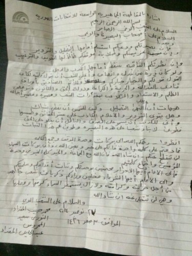 وقال بيان موقع من آية الله الشيخ عبدالجليل المقداد والشيخ محمد حبيب المقداد والشيخ سعيد النوري والشيخ ميرزا المحروس "إن بصيرتكم ووعيكم استسلم أمامها التضليل والتزوير، وإن عزيمتكم وصلابة موقفكم طأطأ لها التخويف والترغيب".