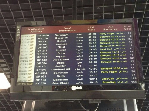 وأظهرت لوحة رحلات الطيران في مطار البحرين الدولي تأخير معظم الرحلات هذا الصباح.