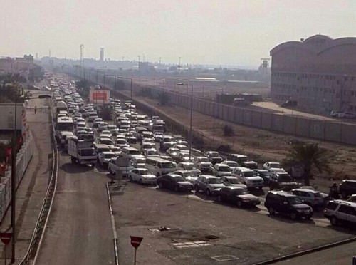 وشهدت شوارع البحرين ازدحامات خانقة بسبب إغلاق معظم الشوارع الحيوية الرئيسية من أجل سباق "الترايثلون" لرياضة الجري الذي يقام تحت رعاية نجل الملك ناصر بن حمد.