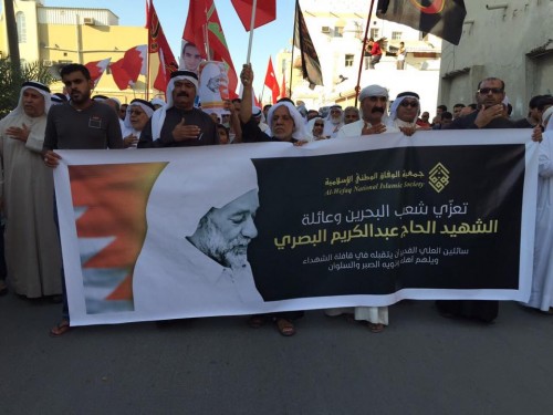مرآة البحرين (خاص): شيع آلاف البحرينيين اليوم الشهيد عبدالكريم البصري الذي قضى في تفجير استهدف مسجدا للشيعة (الثلاثاء 9 ديمسبر/ كانون الأول 2014) جنوب غرب العاصمة المنامة، بعد ساعات من إعلان وزارة الداخلية عن مقتل أردني يعمل لصالحها.