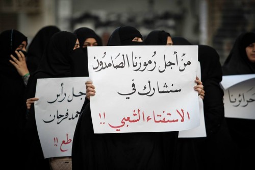 وأردفت بأن "بعض العناصر المنتمية الى ائتلاف 14 فبراير، قاموا بتنظيم تجمع تحشيدي في 9 أكتوبر/ تشرين الأول 2014 في منطقة المعامير، مؤيدين للهيئة الوطنية للاستفتاء الشعبي، وشارك في تلك الفعالية نحو 40 شخصا كما دعا القائمون على التجمع بمقاطعة الانتخابات البرلمانية والدعوة الى المشاركة في الاستفتاء".