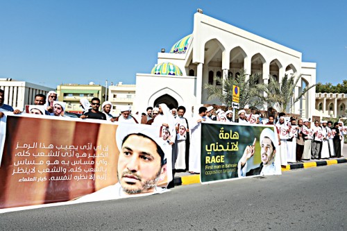 رجال الدين الشيعة يعتصمون في المنامة للإفراج عن الشيخ علي سلمان: عواقب وخيمة ستكون لاعتقاله