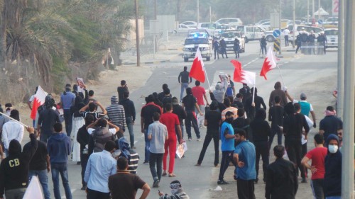 ووصلت التظاهرات الغاضبة التي تكرر خروجها بالرغم من العنف والبطش الرسمي، إلى الشارع السريع (شارع عيسى بن سلمان) الذي يربط البحرين بجسر يؤدي إلى السعودية.