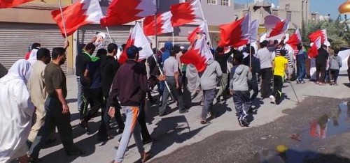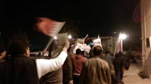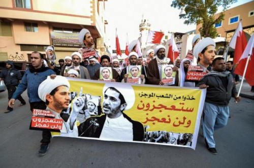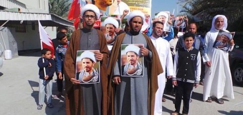 ورفع المحتجون صور الشيخ علي سلمان وأعلام البحرين مطالبين بالإفراج الفوري عنه، ومحملين السلطات مسؤولية ماستؤول إليه الأمور في البحرين.