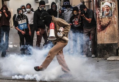 وبين الدروع البلاسيتكية، والأقنعة الواقية من الغاز، وسمّاعة الشعارات، ومن يلتقط القنابل ويعيد قذفها أو ركلها تجاه القوات الامنية، تغيب الصورة في غمام الغاز، وتغيب معها أوجه المتظاهرين، شبّانا وفتيات، وهم يتفادون الطلقات يمينا وشمالا، لكنّهم يظلّون هناك، حاملين الموت أو صورة الشيخ علي سلمان.