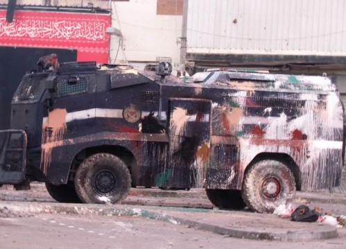 يقترب شبّان من المدرعات الأمنية أكثر فأكثر، أحدهم يرفع علما بقربها، وآخر يرميها بأصباغ أو حجارة، وعزلا يلوح بعضهم إلى المدرعات المصفحة، تعالوا: نحن لا نخاف، هذه بلادنا، هذه قريتنا، هذا حينا!