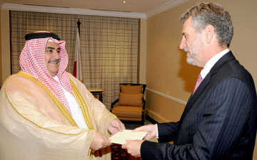 هذا وقد رحب آل خليفة بالسفير الجديد المعين، مشيدا "بالعلاقات المتينة والوثيقة التي تربط بين مملكة البحرين والولايات المتحدة الأميركية"، ومتمنيا له "التوفيق في مهام عمله والسعي الجاد إلى توطيد علاقات الصداقة والعمل لما فيه خير وصالح البلدين والشعبين الشقيقين".