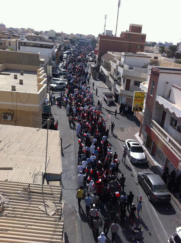 وعقب الانتهاء من مراسم الدفن، سار آلاف من المتظاهرين الغاضبين باتجاه دوار اللؤلؤة من خلال الطريق الداخلي الذي يصل منطقة جدحفص بالعاصمة المنامة، ليلتحموا بقوات الشغب التي أقامت حائط صد مؤلف من أعداد كبيرة من عناصر الأمن الراجلة ودوريات الأمن، والتي زيدت لاحقاً بتعزيزات أخرى. واستبقت وصول المتظاهرين إليها بمباشرة الطلق لقنابل الغاز المسيلة للدموع والرصاص المطاطي والقنابل الصوتية.