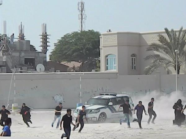 وأجبرت كثافة الطلق التي قال شهود عيان إنه كان "يصوب عمدياً باتجاه المتظاهرين مباشرة" الأخيرين على التراجع إلى داخل أزقة قرى سنابس والديه وجدحفص، لتبدأ من بعدها عمليات الكر والفر بين الشرطة والمتظاهرين.