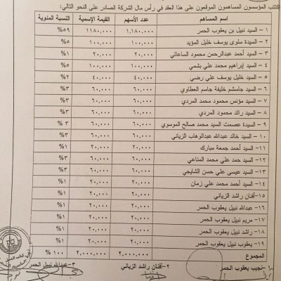 وصرّح أحد المساهمين الأربعة وهم مؤنس المردي وأخيه رائد المردي وسلوى المؤيد وعصمت الموسوي، أن المحامي الموكل من قبلهم يقوم حالياً بتحليل التقارير المالية وجمع المستندات اللازمة تمهيداً لرفع الدعوى، وأضاف "قضايا فساد مالية ضخمة تحيط بنبيل الحمر رئيس مجلس الادارة وفق ما كشفت عنه التقارير المالية للمؤسسة".
