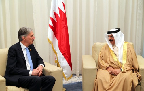 مرآة البحرين: استقبل ملك البحرين حمد بن عيسى آل خليفة وزير الخارجية البريطاني فيليب هاموند (الجمعة 13 مارس/ آذار 2015) على هامش مؤتمر دولي لدعم الاقتصاد المصري عقد في مدينة شرم الشيخ السياحية.