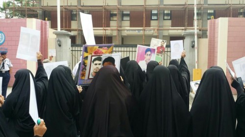 مرآة البحرين: اعتصمت عوائل معتقلين في سجن جو المركزي (الخميس 19 مارس/ آذار 2015) أمام بيت الأمم المتحدة في المنامة، مطالبين المنطمة الدولية باتخاذ إجراءات لإنقاذ أبنائهم الذين يتعرضون منذ أكثر من أسبوع لاعتداءات مستمرة.