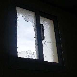 كما عرضوا صوراً تظهر قيامه بتحطيم إحدى نوافذ مسجد "العبد الصالح" الذي يقع على الشارع العام في القرية.
