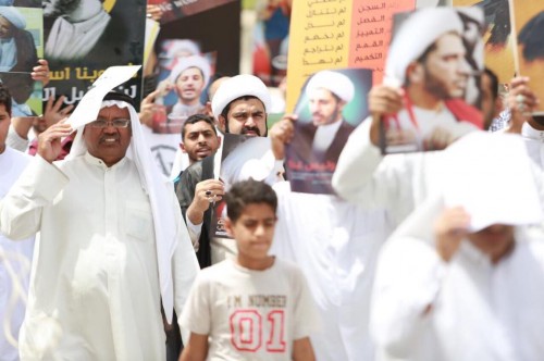 وطالبت التظاهرات التي خرجت في مناطق غرب وجنوب العاصمة المنامة بالإفراج عن رموز المعارضة المعتقلين، ورفعوا صورا لأمين عام الوفاق الشيخ علي سلمان الذي تعتقله السلطات منذ نهاية العام الماضي.